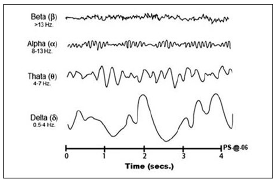 เป็นคลื่นสมองที่ช้าที่สุด เกิดขึ้นในขณะนอนหลับ สมองทำงานตามความจำเป็นเท่านั้น แต่กระบวนการของจิตใต้สำนึกจะจัดและเก็บข้อมูลอย่างต่อเนื่องเป็นช่วงที่ร่างกายกำลังพักผ่อนอย่างเต็มที่ หลับลึกโดยไม่มีความฝัน จะรู้สึกสดชื่นเป็นพิเศษเมื่อยามตื่น